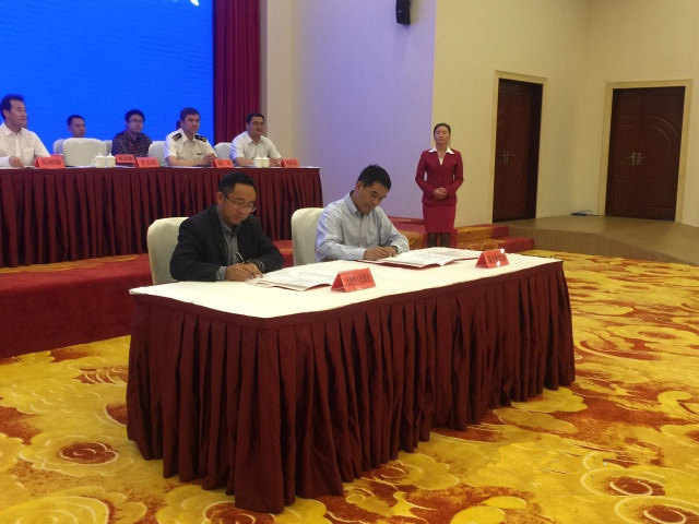 聯(lián)合驗收組組長、海關(guān)總署加貿(mào)司李志輝副司長與云南省政府副秘書長和麗貴簽署聯(lián)合驗收紀要